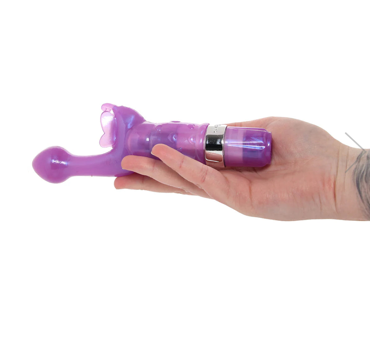 Kiss, flutter, finish! The Butterfly Kiss dives inside with a curvy, bulbed shaft while soft wings and tickly antennae tease every outer zone at once.