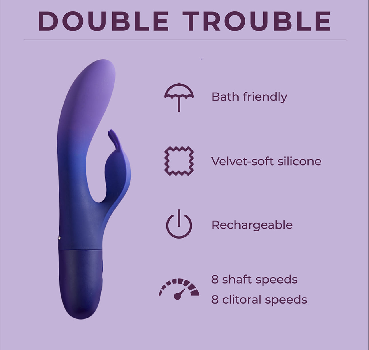 Who doesn’t love a little drama? Well, prepare for trouble…and make it double! This flexible dual-action vibewill give you a double dose of irresistible pleasure with independently controlled motors in the shaft and clitoral teaser. Each motor boasts 8 progressive speeds of vibration for a total of 16 mix-and-match ways to stir up a little bedroom drama.
